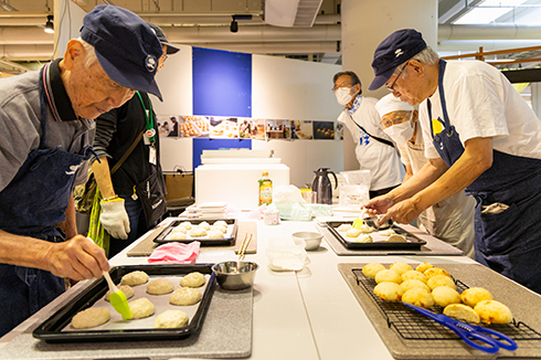 活動10年目を迎えるシニア男性パンづくりチーム「パンじぃ」によるパン部をはじめ、マドレーヌなどの試食を行う「パピィ」の洋菓子部、本格的なスパイスカレーを手掛ける「カレー男(だん)」のカレー部、そして一人ひとり丁寧にドリップし試飲を行う「淹(えん)」のコーヒー部が、日頃の活動成果を披露しました。