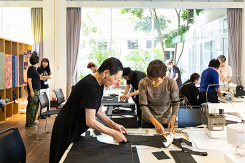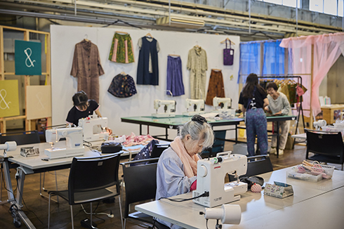 大人の洋裁教室のメンバー「洋裁マダム」たちは、制作の様子を公開し、「洋裁部」として作品展示やミシンの無料貸し出しを行いました。