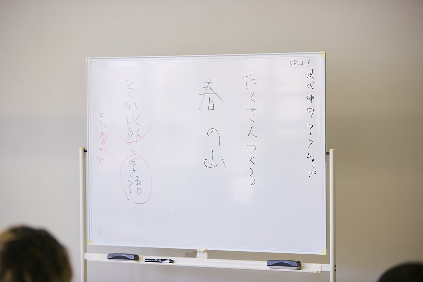 完成した作品を鑑賞する時間では、講師の批評を聞きながら参加者の句を味わいました。講師の解説や感想を聞きいていると、俳句の楽しみかた、言葉の魅力への理解が深まります。また、他の参加者の表現に触れることで新たな気づきが生まれ、場の中での交流も自然と広がっていました。