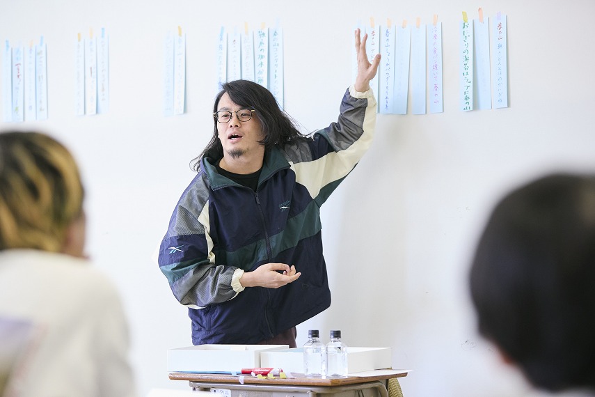 当日は、講師である現代俳句の書き手・岩田奎さんより、俳句の基本や言葉の捉え方について簡単なレクチャーを行ったあと、実際に言葉を組み合わせたり、音やリズムを意識したりしながら、自分だけの一句を考えるワークに取り組みました。