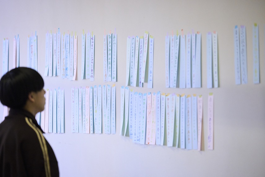 参加者のみなさんは、日常の中で感じたことや思い浮かんだイメージを言葉にしていき、それぞれの視点や感性が表れる多様な表現が生まれていました。制作の過程では、「どう伝えるか」「どの言葉を選ぶか」といった試行錯誤を楽しむ様子が見られ、短い言葉の中に自分らしさを込める体験となっていました。