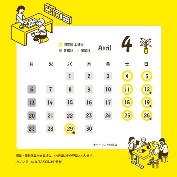 ※常設プログラムのご利用について、2026年4月4日(土)より、スペースの運営見直しに伴い、開室時間の変更を行いました。詳しくは「開室時間の変更について」をご覧ください。