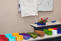 ①色彩ワークショップ、②裏打ち布でつくる着せ替え人形、③ほどいてつくるコースター、④フラワーカプセルづくり